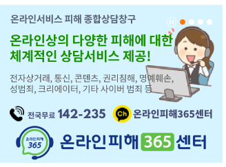 그밖의 온라인 상에서 발생하는 각종 피해에 대해서 [온라인피해 365센터]를 통해 상담받으실 수 있습니다. 결제/환불, 악성댓글, 개인정보침해, 명예훼손, 사이버 범죄 등의 피해를 입으신 경우 적극적으로 사용하시기 바랍니다.
