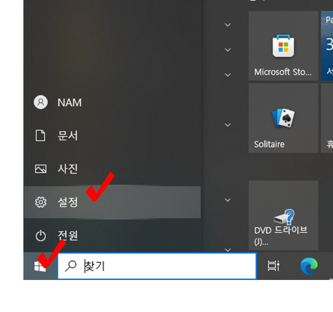 - 작업표시줄에 윈도우 버튼을 클릭합니다.