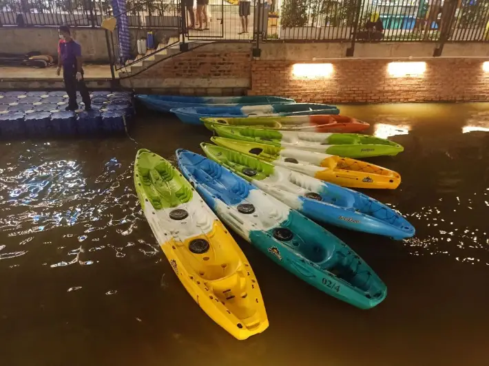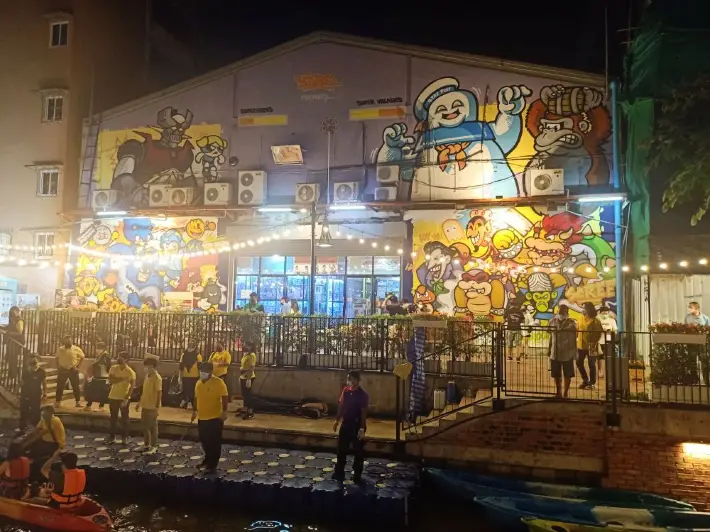 방콕여행 중에 야시장을 둘러보는 재미를 빼놓을 수 없습니다. 킹더랜드 촬영지로도 야시장이 나왔는데요, '크롱옹앙 워킹 스트리트(Khlong Ong Walking Street)'입니다. 운하 양쪽에 태국 예술가들의 다양한 벽화작품이 있어 낮에 산책하기에도 좋습니다. 야시장은 금요일~일요일 16시~22시에 열리며 수로에서 카약도 탈 수 있고 여러 나라의 음식을 맛볼 수 있습니다.