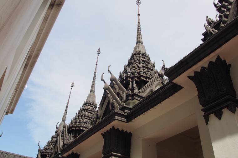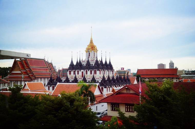VIP 툭툭이를 타고 밤하늘에 뜬 보름달을 보며 소원을 빌 때 나왔던 킹더랜드 촬영지는 '왓 랏차낫다람' 사원입니다. 철의 궁전이라 불리며 '로하 쁘라삿(Loha Prasart)'으로 많이 알려진 곳입니다. 내부에 나선형으로 된 나무계단을 통해 꼭대기에 올라가면 탁 트인 방콕 풍경을 볼 수 있습니다. 입장료는 무료입니다.